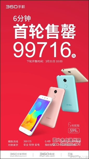 作为5英寸单手握持机型, 360手机f4选择了与iPhone SE相近的发布时间,以颜值、安全、优质体验等特点,赢得了业界的肯定,被网友亲切称作为“安卓机小苹果”。本轮开售结束后,下周四(3月31日上午10点将开启第二轮发售,有兴趣的朋友记得到时锁定360商城、360手机商城以及天猫商城,精彩不容错过。