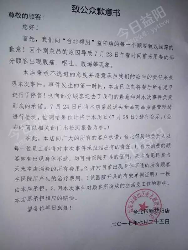 事件发生后,赫山区委、区政府高度重视,立即组织食药监局、疾控中心等单位采取应急处置措施。7月24日,区食药监局对万达广场“台北帮厨”餐饮店进行了现场检查,对现场食材进行了抽样送检,并下达了责令整改通知书。7月25日上午,区食药监局对该店法人及三位股东进行了集体约谈,责令门店停业整顿,要求该店等待调查结果出来并验收合格后,才准予重新营业。同时,市、区疾控中心对患者进行了流行病学调查,并对相关样品进行检验。其它有关事项正在进一步调查。