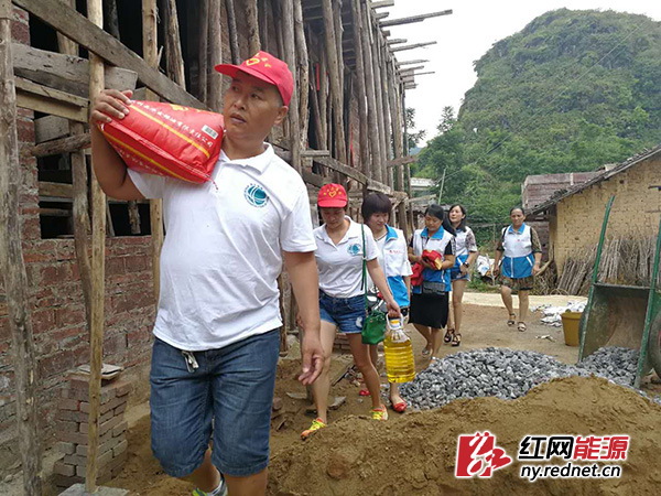 国网江华县供电公司共产党员服务队及志愿者们为何继忠一家送上了油粮。