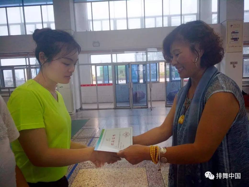全国排舞广场舞中心技术委员会副主任、湖南省中心执行主任唐萍女生为考试合格学员颁发结业证书