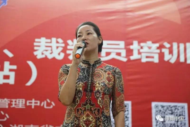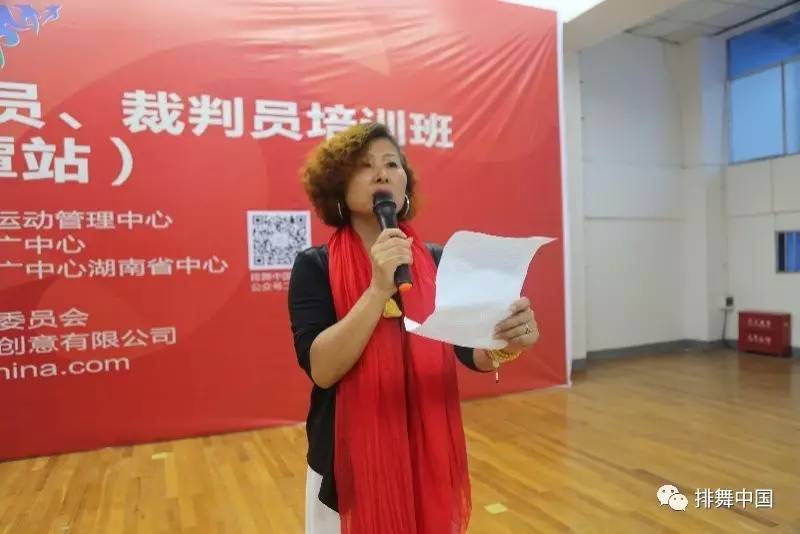 全国排舞广场舞中心技术委员会副主任、湖南省排舞广场舞中心执行主任、怀化学院教授唐萍女士讲话