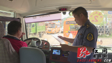 道县联合执法组对校车进行路面检查。