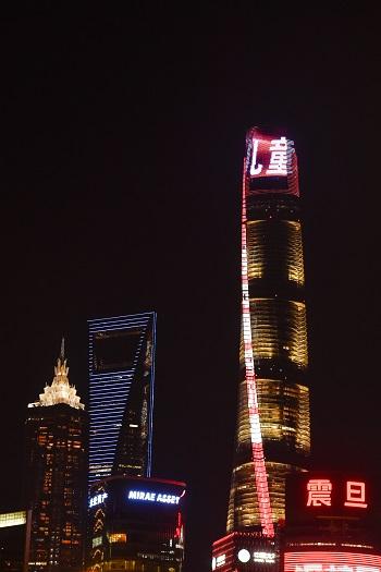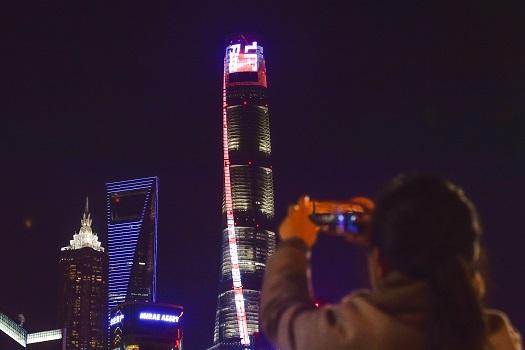 12月12日夜晚,中国第一高楼、总高632米的上海中心换上特别装扮,为留守儿童点亮霓虹,引来无数路人围观。楼顶亮灯呈现出“关爱留守儿童”、“用爱拍卖”的醒目标语,呼吁全社会关注留守儿童现状。(央视 马力)