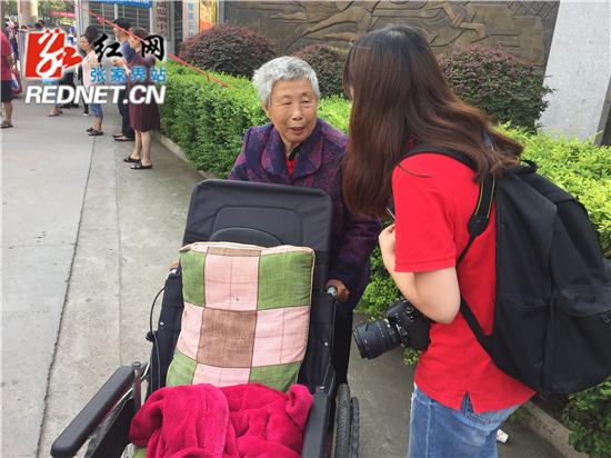 75岁的宋奶奶自己坐着轮椅来送外孙女高考