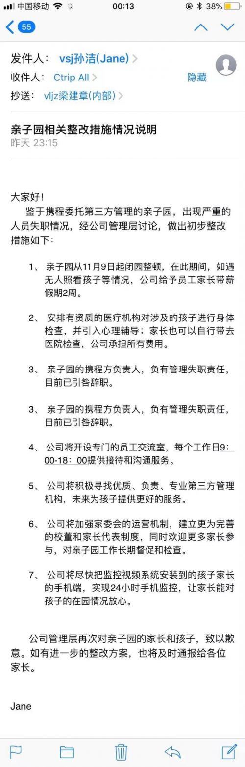3、 亲子园的携程方负责人,负有管理失职责任,目前已引咎辞职。