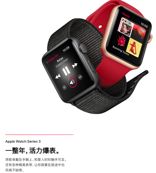 接下来,苹果推荐的产品为和iPhone X一起发布的Apple Watch 3。不过,作为主打卖点的LTE功能由于运营商等原因,在国内还不能正常使用,苹果的新年页面上也自然避而不谈。