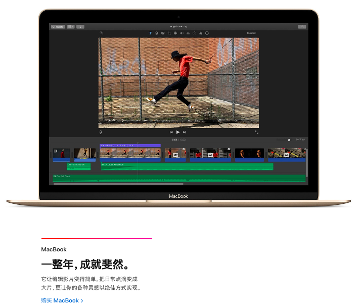 最后,苹果还摆上了iPad Pro和MacBook这两款作为苹果生产力工具代表的产品,着重介绍的功能都是视频剪辑。