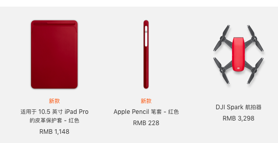 另外,在以上提到的这几款主要产品的页面中间,苹果还推荐了很多售价不低的配件,例如1148元的iPad保护套、1288元的AirPods、3288元的大疆无人机。