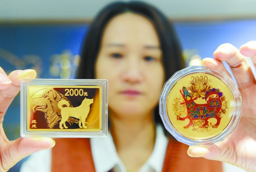 11月24日,工作人员展示戊戌(狗年纪念币。当天,由中国人民银行发行的2018中国戊戌(狗年金银纪念币在长沙发售。该套纪念币共17枚,其中金质纪念币10枚,银质纪念币7枚,均为中华人民共和国法定货币。