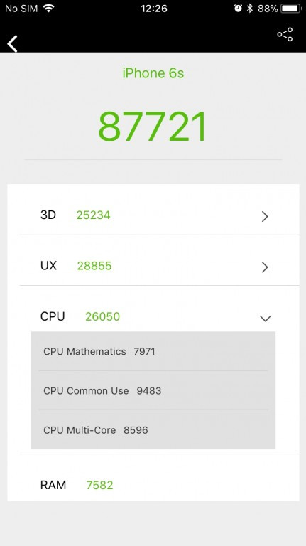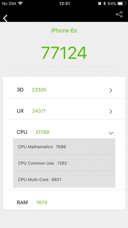 至于iPhone 6s,处于iOS 11.1.2版本的安兔兔跑分为87721分,系统升级之后跑分为77124分,也是出现了跑分下降的情况。