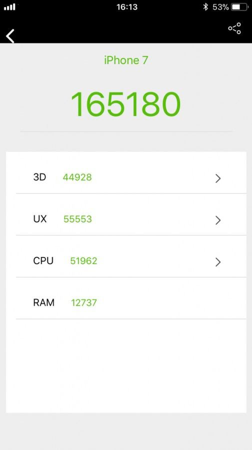 iPhone 7系统升级前(上)后(下)跑分对比: