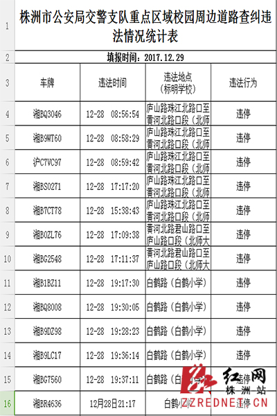 时刻12月29日株洲 龙琦 彭晚华12月11日起,湖南株洲交警部门对重点区域校园周边道路交通环境开展专项整治,整治重点集中在景炎学校、外国语荷塘学校、北师大附中、白鹤小学周边道路,严查违停等交通违法行为。目前通过监控设备抓拍、民警现场执法的方式,查处违法停车等违法行为400多起,校园及周边道路交通环境得到明显改善。