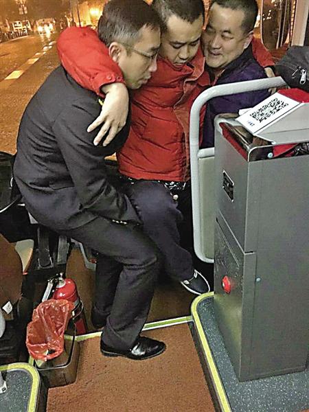 很快,驾驶员代洪波回到车旁,在了解了张先生遇到的困难后立即表示:“我来背他上车,你们看可以吗?”张先生的父亲一看代洪波纤瘦的体型和强壮的儿子,立即说:“谢谢你驾驶员,怕你背不动他,还是我们一起把他抬上车吧!”代洪波当即同意了,并上车找了一个安全的位置,又跑下车来对他们笑着说:“我瘦是瘦有肌肉,我的力气大着呢!”一句玩笑话,让原本心情不大好的小张露出了感激的微笑,并连声道谢。