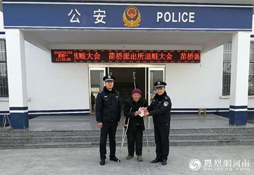 近日,永城市公安局苗桥派出所为该镇七旬老人蒋老汉追回被盗的救命钱,老人在派出所领取被盗的养命钱后感激不已。据了解,1月7日,苗桥派出所接到辖区群众报警称,有群众家中被盗,丢失现金两千二百元。