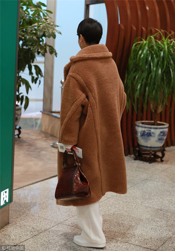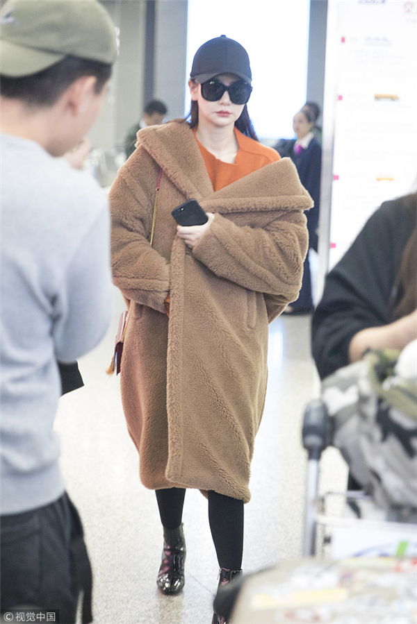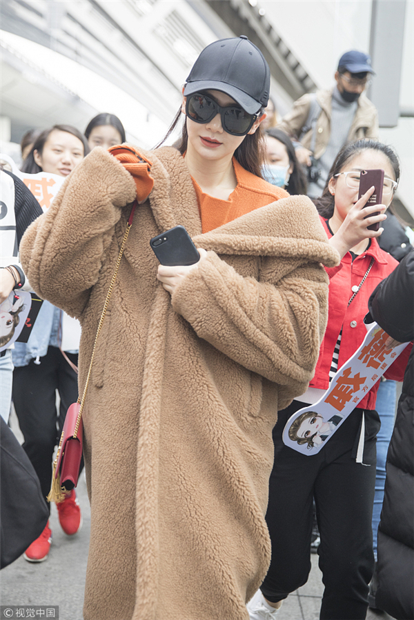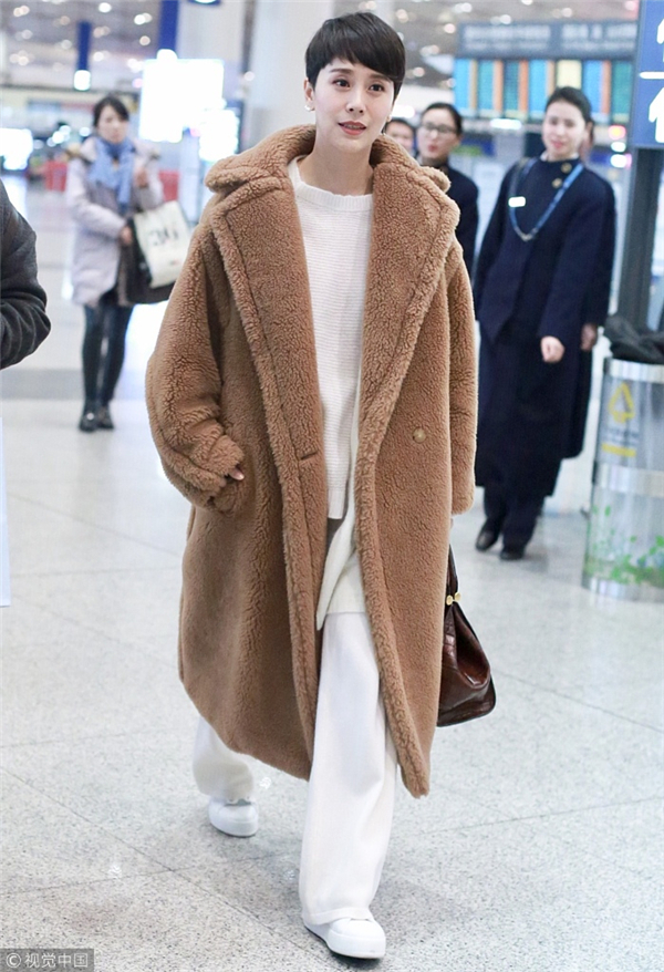 近日,戚薇身穿Max Mara泰迪熊大衣,内搭橙色针织衫,戴墨镜和黑色鸭舌帽现身机场~造型简洁而温暖。