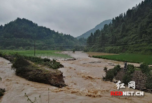保靖葫芦镇大量农田被洪水冲毁。保靖防汛办提供图片