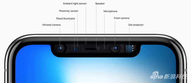 iPhone X的面容ID识别技术主要来自于屏幕上方的“齐刘海”,内置TrueDepth摄像系统,塞下了红外线镜头、泛光感应元件、距离感测器、环境光感测器、点阵投影器等元件,总体来说有了这些元件的加持,准确率更高并且响应更迅速。