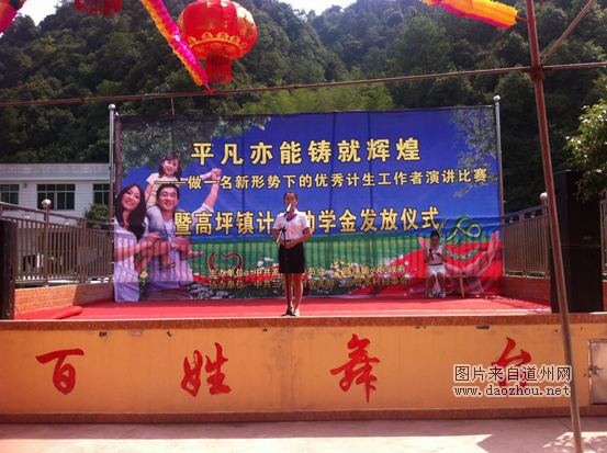 计生演讲亮功夫 计生助学显大爱内容概述:9月9日,高坪镇在三合水村杨林屋迟办主题为平凡亦能铸就辉煌——做一名新形势下的优秀计生工作者演讲比赛,十三名从预赛中脱颖而出的选手为大家奉献了一倡