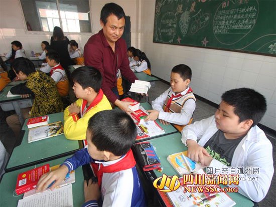 四川达州10月27日讯(杨华)10月21日上午,达川区金华学校六年级1班迎来五位客人,他们给全班每一位同学各送了一本《新华字典》、两袋雪饼和一支棒棒糖,还给这个班赠送了一个篮球、两副羽毛球拍、一盒羽毛球、两副乒乓球拍和一罐乒乓球,并向全班师生表达了感谢之情。这五名客人是达川中学副校长何成林一行,他们为啥给这个学校这个班赠送礼物并致谢意呢?