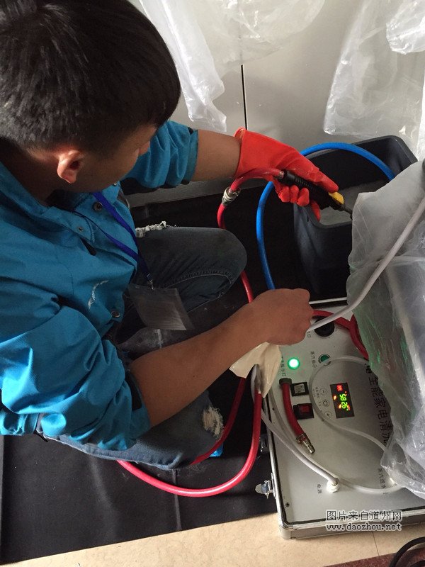 这里面重点说一下清洗机。在清洗油烟机和冰箱的过程中,这台机器最大的作用就是产生高温水蒸气和对水流加压,在清洗油烟机的滤网和涡轮和各种缝隙时候显得特别有用,另外就是对冰箱快速除霜和高温消毒。