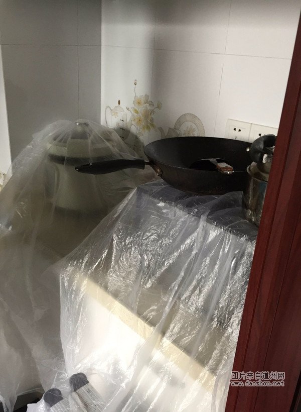 不过,将灶台上的锅挪到一旁时直接放在塑料膜的上面,这个细节不到位,应该是要减分的吧?
