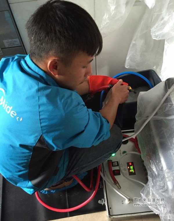 通过聊天得知,这个小伙子此前已经在美的网点做过2年的空调售后安装及维护工作,改做家电清洗前,还被抽调到美的集团进行了大约一个月的培训。