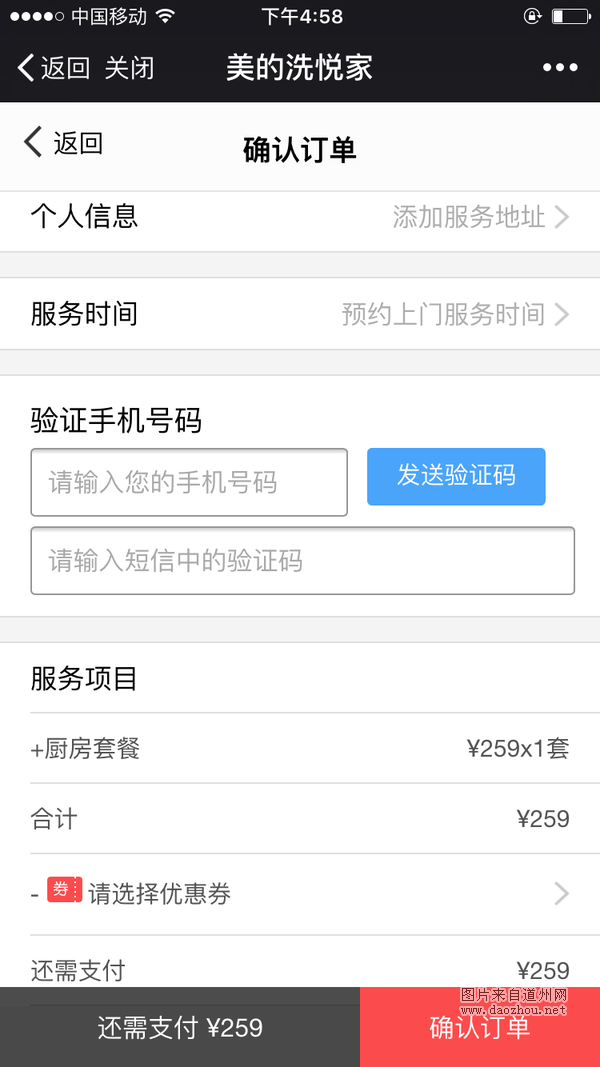 下单的过程比较简单,选好项目后输入具体地址,联系人及电话,预约好时间,再通过微信支付下单即可。