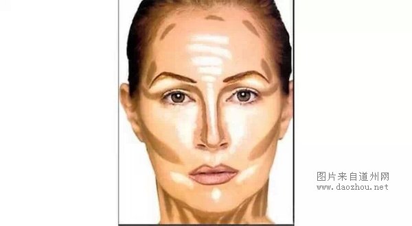 如图所示,白的地方涂高光(把皮肤提亮),暗的地方涂阴影。利用光感折射和化妆技巧打造小V脸。