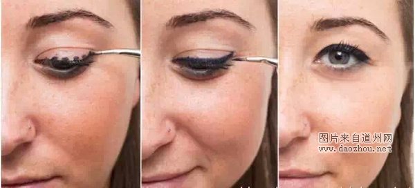 沿眼皮底部的睫毛根处点出一些圆点,然后将这些点连接成眼线,圆点的直径应该是你希望的眼线宽度。