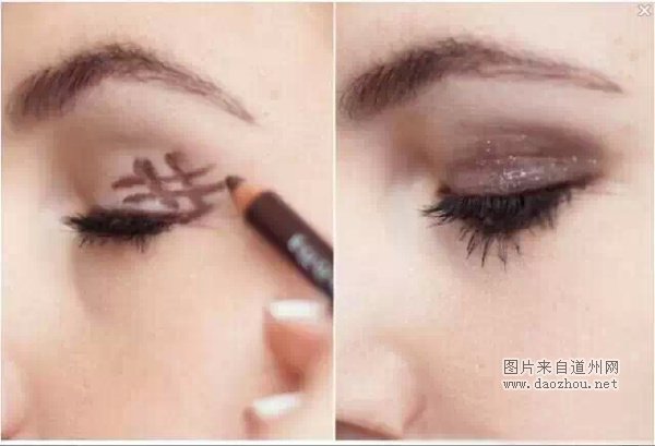 白色眼线笔勾勒眉毛营造深邃眼妆