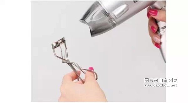 将睫毛夹用吹风机吹热再去夹睫毛,和电睫毛器的原理一样,利用高温使睫毛更翘。