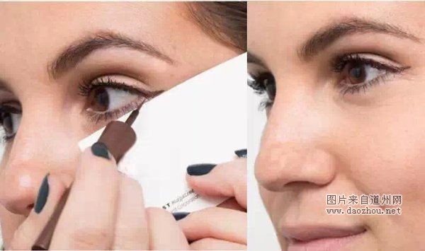 还可以使用名片的边缘,打造完美的眼线尾部线条。