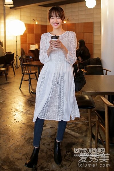白色长袖蕾丝裙,温柔淑女的裙子设计,大方时髦款式,穿在身上尽显时尚感,混搭牛仔裤和高跟短靴,穿上拉风的大衣,让你魅力十足。