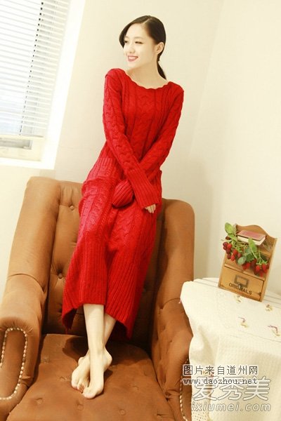 大红色毛衣长裙,鲜艳热情的色彩,厚实温暖的感觉,穿在身上透着活泼甜美的气息,这款毛衣裙也是冬季最流行款式,搭配厚外套穿,吸晴时髦。