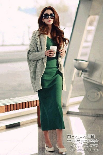 绿色系修身毛呢质地长裙,紧身裁剪勾勒出曼妙身姿,这款裙子对身材的要求很高,必须是高瘦女生才能穿出这样美美的效果,搭配毛衣外套和高跟鞋,穿出优雅女人味。